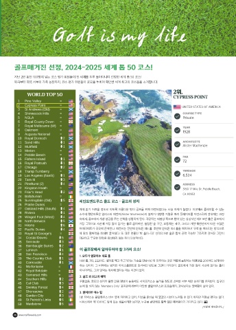 지난 2년 동안 100명이 넘는 코스 평가 위원들이 전 세계를 두루 돌아다니며 선정한 세계 톱 50 코스!