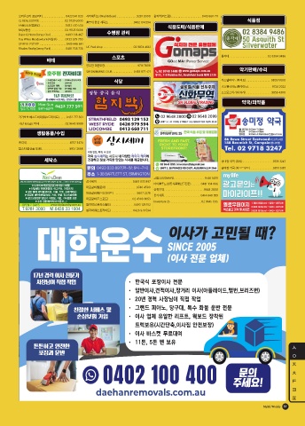 CJ REAL ESTATE . . . . . . . . . . . . . . . . . .02 9739 6000 홈부쉬 한인 세탁소 . . . . . . . . . . . . . . . . . .0452 194 594 식품점