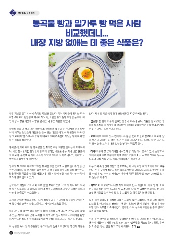 일본의 한 연구에 따르면 12주간 통곡물 빵을 섭취한 사람은 밀가루 빵을 섭 이는 커피 속 항산화 성분인 클로로겐산이 내장 지방 제거 효과가 있기 때문
