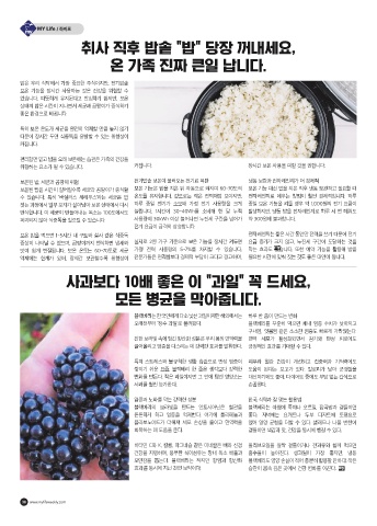 건강을 지탱하며, 풍부한 식이섬유는 장내 독소 배출과 흡수율이 높아진다. 생과일이 가장 좋지만, 냉동